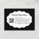 Trendy vintage-inspired black and white bow pattern business card designed for pretty, girly, feminine brands. Perfect for handmade baby clothing boutiques, makeup artists, and small business owners. Includes stylish QR code placement for modern, professional networking.