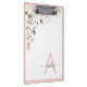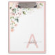 Pretty Pink Floral Script Monogram Initial Name Klemmbrett