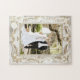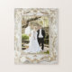 A puzzle that can be personalized with your wedding photo. Your photo will fit inside the pretty white lace wedding frame puzzle.