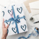 Preußisches Blau auf weißem Handgezeichnetes Herz Geschenkpapier