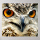 Das Porträt einer Eule, die darauf aus ist, seine Beute zu fangen, nah.