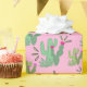 Dieses spielerische und lebendige Muster zeichnet sich durch handgezeichnet Kakteen und Sukkulente aus, die mit hellrosa Blume vor einem weichen rosa Hintergrund blühen. Das skurrile Design vereint eine lustige, wüsteninspiriert Ästhetik mit einer modernen Drehung.