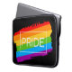 Dieses Kunstwerk zeigt einen farbenfrohen Regenbogen mit dem Wort Pride.