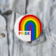 Pride Rainbow Button Button Design in moderner Typografie, die "PRIDE" in einem einfachen, aber sauberen minimalistischen Design liest. Einfaches Design in Pride Regenbogenfarben, das für jeden gut funktioniert.