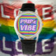 Feiern Sie Diversity und Inklusion mit diesem dynamischen Design mit "PrideVibe", umgeben von einem Spektrum an Regenbogenfarben. Die strahlenden Farbtöne kontrastieren wunderschön mit dem schwarzen Lederband und schaffen ein feines Statement-Stück, das Einheit, Liebe und Individualität verkörpert. Ideal, um Ihren Pride das ganze Jahr über mit einer stilvollen und farbenfrohen Uhr zu zeigen.