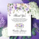 Simplement élégant merci sympathie funéraire - carte de prière. Bouquet floral rustique design en aquarelle (aquarelle) verdure verte, lavande, violet, violet, lilas, rose rousse, pêche, roses de fleurs blanches / pivoine sur lettres arrière - plans blanches et noires. Le dos de la carte a du poème.