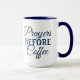 Cette tasse à deux tons blanc amusant comporte une poignée bleue marine royale et à l'intérieur, avec l'expression ludique "Prières avant café" dans un mélange de script et de polices serif. Un grand cadeau pour les chrétiens qui aiment leur café, parfois plus que leur temps de prière! Parfait pour commencer votre journée avec un sourire et un rappel pour garder la foi en premier, même si le café vient en premier.