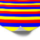 Primär gefärbte Spiralkonstruktionen. Ein helles, farbenfrohes Stück mit einem lustigen, mehrfarbigen wirbelfarbigen Muster in Rot, Blau und Gelb. Helle Farben und lustiges, lebendiges Muster.