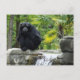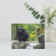 Ein Primat liegt auf einem Felsen neben einem Wasserfall.