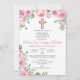 Haz que la Primera Comunión de tu hijo sea special con esta linda y elegante invitación. Adornada con rosas rosadas y una encantadora cruz, captura la esencia de una ceremonia religiosa católica. Mit dieser niedlichen und eleganten Einladung machen Sie die Erste Kommunion Ihres Kindes ganz besonders. Mit rosa Rosen und einem charmanten Kreuz verziert, fängt es das Wesen einer religiösen katholischen Zeremonie ein.