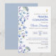 Feiern Sie den besonderen Tag Ihres Sohnes mit dieser eleganten Einladung der First Communion mit niedlichen Wildblumen und einem goldenen Kreuz. Ideal für die Erste Heilige Kommunion eines katholischen Jungen. Spanisch: Celebra la Primera Comunion de tu hijo con esta invitacion de flores azules.