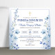 Laden Sie Ihre Gäste mit dieser quadratischen Einladung in eine Erste Kommunion ein. Dieses mit blauen Blumen und einem Kreuz geschmückte Design ist ideal für eine katholische Erstkommunion. Spanien: Celebra la Primera Comunion de tu hijo o hija con esta invitacion.