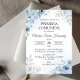 Diese Einladung der ersten Kommunion zeigt blaue Blumen in einem eleganten Stil. Eine niedliche Art, Liebende in die katholische Erste Heilige Kommunion Ihres Kindes einzuladen. Spanien: Celebra la Primera Comunion de tu hijo o hija con esta invitacion.