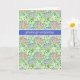 Une jolie carte d'anniversaire avec "Joyeux anniversaire" en flamand et un motif de primroses profondes, bleus et jaunes, d'un design peint à la main par Judy Adamson.