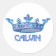 Begrüßung des neuen Babyjungen Prince Calvin mit einer individuell gestalteten blauen Krone auf einem personalisierten Aufkleber von TOEtalitee™.