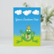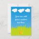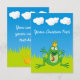 Froschfrosch Cartoon mit Krone. Abnehmbare Hintergrundelemente (Himmel, Gras, Wolken). Eigener Text.