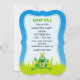 Prinzfrosch Cartoon mit Krone über grünem Gras unter blauem Himmel.
