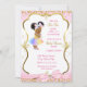 Schöne Rosa und Goldpolka Babydusche Einladung für Ihren besonderen Tag! Die Einladungen haben einen rosafarbenen und weißen Hintergrund mit goldenen Glitzer-Fesseln und einem wunderschönen afrikanisch-amerikanischen Babymädchen mit niedlichen bunten Tutuen und Perlen. Anpassbare Formulierung.