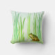 Dieses Kissen ist ein kleiner grüner Frosch mit einem gelben Bauch, der zwischen den Gräsern am Teich sitzt. Sie scheint einsam zu sein, als sei sie für ihren Prinzen Charming gewartet. Das Bild wird auf der Rückseite wiederholt.