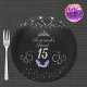 Mit diesem passenden Design aus der Quinceanera Kollektion können Sie Ihren Traumtag 15., Quinceanera Tag ganz individuell gestalten. Die Stringleuchten auf einem schwarzen Hintergrund leuchten oben. Princess tiara über einem Namen mit Sweet 15 und Lavendel Schuhe unter. Fügen Sie auch Ihr Datum hinzu. Swirl silberne Glitzer-Motive an den Seiten, plus eine Streuung silbernen Glitzer unten für diesen magischen Look.