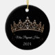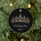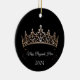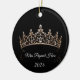 Dieses Keramik-Ornament wird in runder Form mit einem glitzernden Kristalltiara mit weißem Text auf schwarzem Hintergrund gezeigt. Passen Sie dieses Element an und ändern Sie den Beispieltext mit Ihrem persönlichen Seitennamen, Datum oder anderem. Lizenziertes Bild