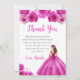 Ce carte de remerciements de sweet sixteen présente une belle princesse dans une robe à boule rose chaud avec des arrangements floraux. C'est parfait pour une fête d'anniversaire en sweet sixteen.