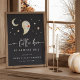 Welcome guests in spooky-cute style with this Halloween-themed baby shower sign from Redwood & Vine Design Co. The dark background features a smiling ghost, crescent moon, and twinkling stars surrounding the phrase “a little boo is almost due.” Whether printed or downloaded as a digital file, this sign adds festive charm to your October celebration. Customize with the honoree’s name and date for a personal touch. Perfect for entry tables, gift stations, or photo booth areas.