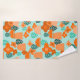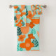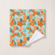 Ce kit de serviettes a un design scandinave de fleurs et de feuilles dans différentes nuances d'orange et de turquoise.