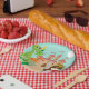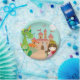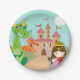 Ein lächelnder Drache, ein Schloss und eine niedliche kleine Prinzessin, die ihr eigenes Schild und Klinge. trägt. Ein koordinierenSet Servietten und Einladungen verfügbar. Eine andere Version für Jungen ist auch verfügbar