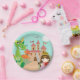 Prinzessin im rosa Schloss und in lächelndem Pappteller
