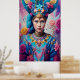 Ein Bild einer Prinzessin mit blauen Augen und Hut. Dies ist ein künstlerisches Kunstwerk mit Blumenmotiv.