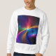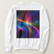 Gekurbelt gefärbtes Licht, das von einem zentralen, hellen weißen Punkt inmitten verstreuter Sterne flammt. Das gleiche Bild wurde horizontal auf der Rückseite gedreht. KI erzeugt.
