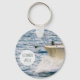 Ein individualisierbarer Schlüsselanhänger mit dem Bild von der Vorderseite eines Bootes, der schnell über das Wasser fährt.