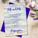 Verkünden Sie eine Hochzeit auf Wasser-Thema Papier, mit Herrn und Frau an der Spitze und Nachname am unteren Ende. Passen Sie die mittlere Textvorlage mit dem Wortlaut für ein Empfang-Party an, um die Neuvermählten zu feiern. See oder ruhiges Meerwasserpapier mit dunklem lila Text.