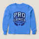 Apportez de l'énergie au letteur à votre chargement, maintenant en bleu. Ce graphique PRO GAMER utilise du lettrage en bloc de varsité audacieux avec une texture "chenille" crème, une bordure marine profonde/bleu-roi et des détails de point, ainsi que des lignes voûtées pour une ambiance classique collégiale de patch. Les branches Laurel, une étoile, et EST. 20XX complètent le look team-badge.