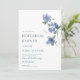 Eine elegante, blaue Einladung mit wunderschön blauen handgemalten Blume für Ihre Probe.