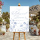 Beginnen Sie Ihren Tag mit einem eleganten Probe-Dinner-Willkommensschild mit einem delikaten blauen floralen französischen Toiledesign. Dieses Schild eignet sich hervorragend, um Ihren Probe Dinner-Festen eine Touch Klasse hinzuzufügen. Es sorgt für einen herzlichen und stilvollen Empfang für alle Teilnehmer.