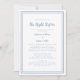 "The Night Before", ein schlichtes und schicke, dusty blue/white wedding Probe Dinner mit einem schlichten, minimalistischen Design mit einem doppelten Rahmen in staubblau auf einem knusprigen, weißen Hintergrund. Personalisieren Sie das Hochzeitsdesign mit Ihren Details in trendiger Schrift und Schrift in blau. Die Rückseite passt gut in Blau. Ersetzen Sie die Vorlagendetails durch Ihre eigenen Angaben, die den Abstand zwischen den Absätzen wie im Beispiel verlasse, und verwenden Sie alle Kleinbuchstaben, sofern angegeben. E-Mail invitationsuites@gmail.com mit Fragen oder benutzerdefinierten Farbanfragen.