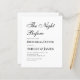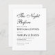 Ein einfaches, minimalistisches Dinner mit schwarz-weißer Probe. Es hat nur schwarzen Text auf weißem Hintergrund. Der Titel "The Night Before" ist in einem eleganten kalligrafischen Skript geschrieben. Der Text ist verlassen ausgerichtet.