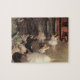Die Probe auf der Bühne (um 1847) von Edgar Degas ist ein Vintages impressionistisches Kunstgemälde mit Ballerina-Tänzern, die ihren Tanz auf einer von Lichtern umgebenen Bühne erleben. Der Tanzmeister leitet ihre Bewegungen, während zwei andere Männer auf der anderen Seite sitzen und die Aufführung beobachten. Über den Künstler: Edgar Degas (1834-1917) gilt als einer der Gründer des Impressionismus, obwohl er lieber Realismus und als Realist bezeichnet werden. Degas wird besonders mit dem Thema Balletttanz identifiziert, und über die Hälfte seiner Werke stellen Tänzer dar.