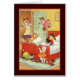 Niedliche Vintage Grafik, die einige Kätzchen in der Kleidung springt auf ein Bett und wirft Kissen zeigt.