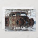 Vergnügen für einen Ruhestand oder Geburtstag. An einem schneebedeckten Wintertag steckte ein rossierter Vintager Klassiker im Wasser.