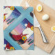 Farbenfrohe rote und türkisfarbene Cowboy Booten gegen eine südwestliche Landschaft.