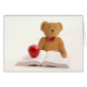 L'ours en peluche brun clair enseigne à la classe avec son livre et pomme mignon éducateurs carte de voeux