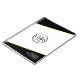 Dieses elegante Notizbuch verfügt über auffällige schwarze abgewinkelte Akzente oben und unten, die durch eine saubere goldene Linie vom weißen Hintergrund abgesetzt sind, was einen scharfen, modernen Touch verleiht. Ihr Firmenlogo befindet sich prominent in der Mitte des Vorderdeckels, während anpassbare Textzeilen entlang der Unterseite Ihren Namen und Titel, den Namen und Slogan Ihres Unternehmens oder beliebige Details enthalten können, die Sie wählen. Perfekt für Meetings, Notizen oder den Einsatz im Unternehmen, sorgt dieses Notizbuch mit vollständig editierbarem Text und Layout für ein gepflegtes und professionelles Auftreten.
