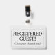Cette conception de badge professionnel comporte le message "INSCRIT INVITÉ!", ainsi qu'un nom de société personnalisable ou un autre message personnalisé. Il dispose également d'une frontière à deux lignes. Un badge comme celui-ci pourrait peut-être être utilisé pour indiquer qu'une personne est un invité ou un visiteur connu et autorisé dans une entreprise ou un lieu de travail. [~Z0000307]