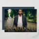 Le faire-part de photo moderne de graduation comporte une photo horizontale ou orientée paysage sur le devant, avec "Graduate" recouvert d'une feuille d'or en gras qui dépasse les bords de la carte, et le nom de votre diplômé, l'école et l'année de graduation en dessous. Ajoutez un message personnel à l'arrière, ainsi qu'une photo supplémentaire.