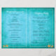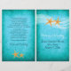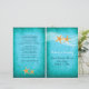 Hochzeitszeremonie am Strand mit Sternenpaarung und türkisfarbenem Schleier und gefaltetes Party mit einigen orangefarbenen Seestern auf weißem Schleier auf türkisblauem und aquamarinem grunem Hintergrund. Dieses moderne Aqua-Hochzeitsdesign ist Teil einer Hochzeitskollektion und ist ein vollständig anpassbares Template, das sich perfekt für eine Sommerhochzeit am Strand eignet. Man muss es in der Mitte falten. Wählen Sie nur diesen Papierwert aus, da er sich gut faltet.
