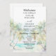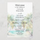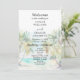 Dieses elegante und wunderschöne Hochzeitsprogramm mit Aquarellfarben bietet einen Strand, blauen Himmel und Palmen. Der Text kombiniert handgeschriebene Skripte mit serifenlosen Schriftart für ein stilvolles und modernes Design. Dies ist ideal für einen Sommerstrand oder eine tropische Hochzeit in Urlaubsort.