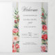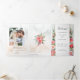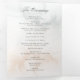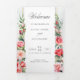 Schöne Säulen mit eleganten Aquarellfarben, rosa Rosen und grünem Blattwerk auf einem subtilen pastellfarbenen Aquarell und mittelem Etikett mit goldenen Rahmen. Verfügt über kalligraphische Textgrafiken im benutzerdefinierten Skript-Schriftart (oder löschen und anpassen im Design-Editor) mit bearbeitbaren Textfeldern für Ihre Zeremonie Details und Hochzeitsteilnehmer.